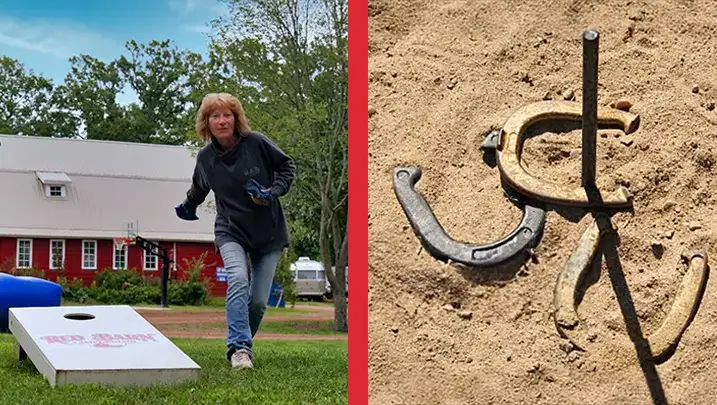 Grab a partner and jump into some classic yard games. Toss bags in a cornhole match or rack up ringers at the horseshoe pits.